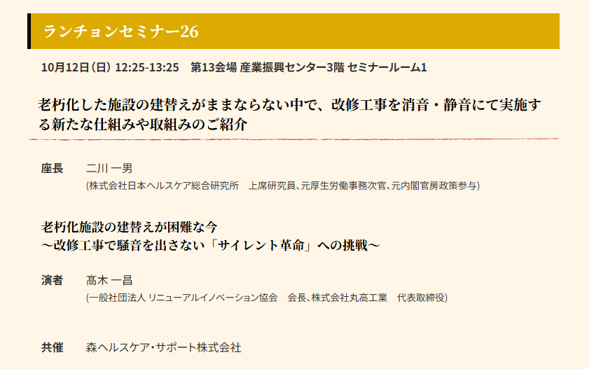 当協会では、今後も医療・福祉施設の安全で持続可能なリニューアル技術の普及・啓発を通じ、業界の課題解決に向けて、貢献してまいります。